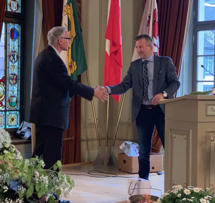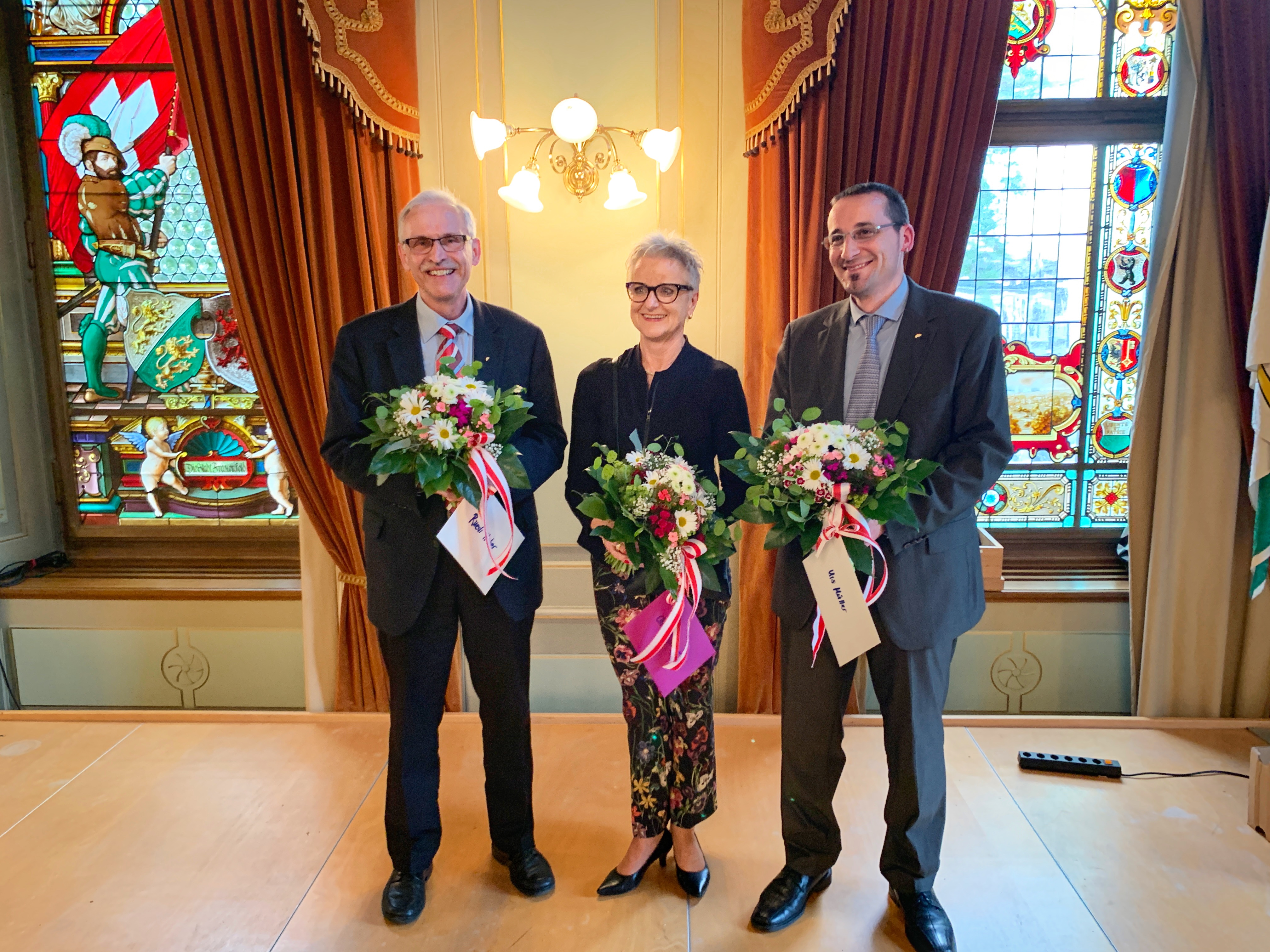 In einer würdigen Feier wurden am Dienstagabend, 28. Mai 2019 die Stadträtin Christa Thorner (SP) und Stadträte Urs Müller (CH) sowie Ruedi Huber (SVP Stadtpartei Frauenfeld) verabschiedet.
