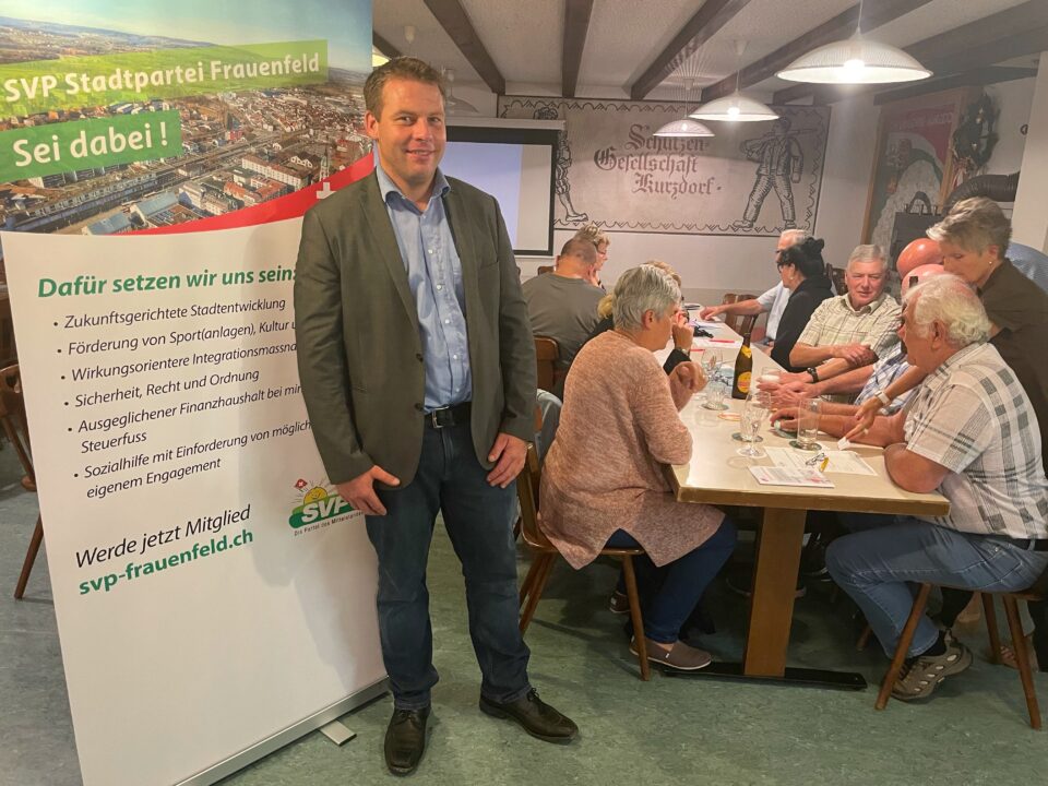 Bereits durch die SVP Bezirkspartei nominiert, richtete Gemeinderat Daniel Geeler ein paar Worte an die Anwesenden. Er freut sich über alle Stimmen, bei der am 25. September 2022 bevorstehenden Berufsrichterwahl des Bezirksgericht Frauenfeld, wo sich der berufstätige Staatsanwalt, zur Wahl zur stellt.