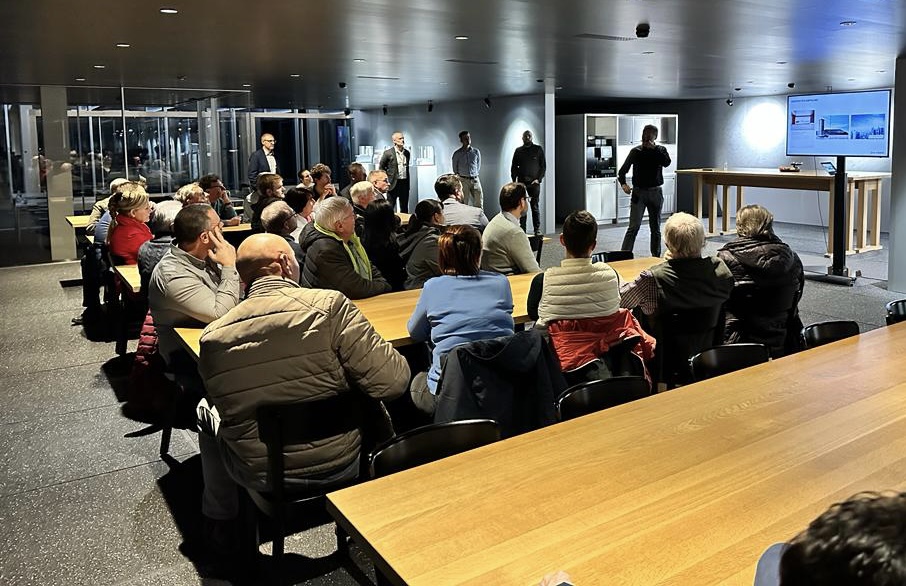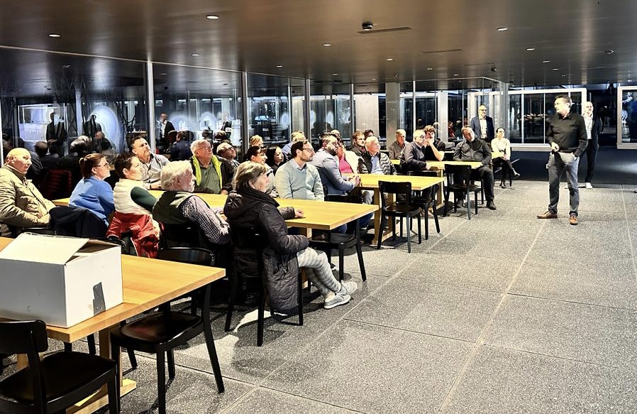 Knapp 30 Personen der SVP Stadtpartei und der SVP Bezirk Frauenfeld besichtigten am 15. November 2022 die Sky-Frame AG in Frauenfeld.